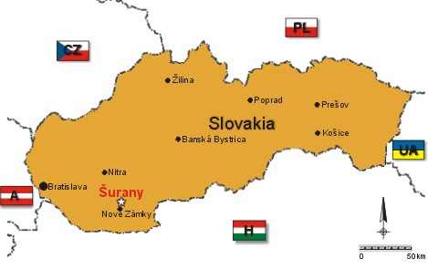 erreichbar mit PKW aus der Hauptstrasse 64 Nové Zámky - Levice.